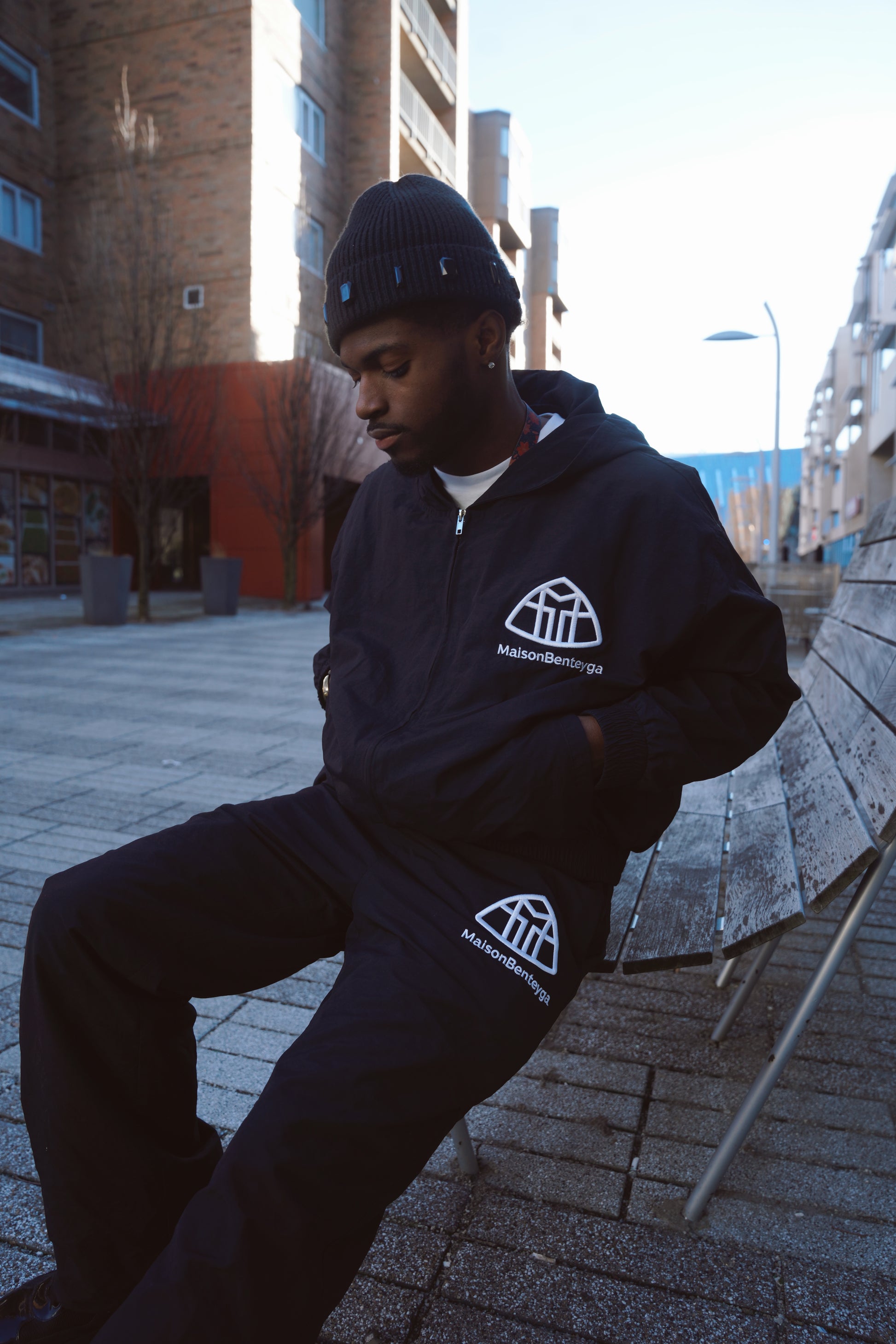 A timeless black essential elevated with Benteyga identity. These wide-leg pants bring a clean silhouette with oversized script typography down both legs. Versatile enough for everyday wear, but strong enough to anchor a full outfit.
